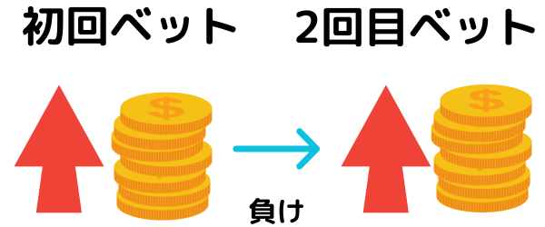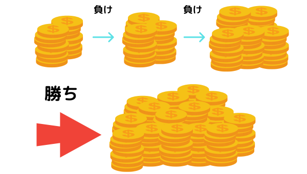 負けた時に賭け金を増やしていくため、1回の勝利で損失分だけではなく利益も出すことができます。