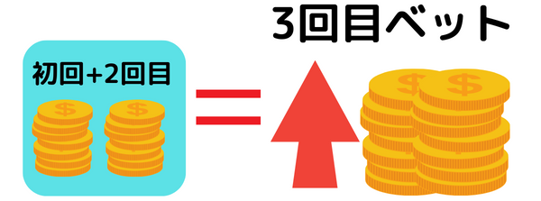 3回目以降は、前回・前々回のベット額を足して賭ける
