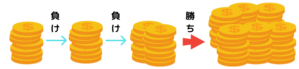 負けが続いても、勝った時にすべて取り戻せるので、1回勝てばいいという安心感があります。