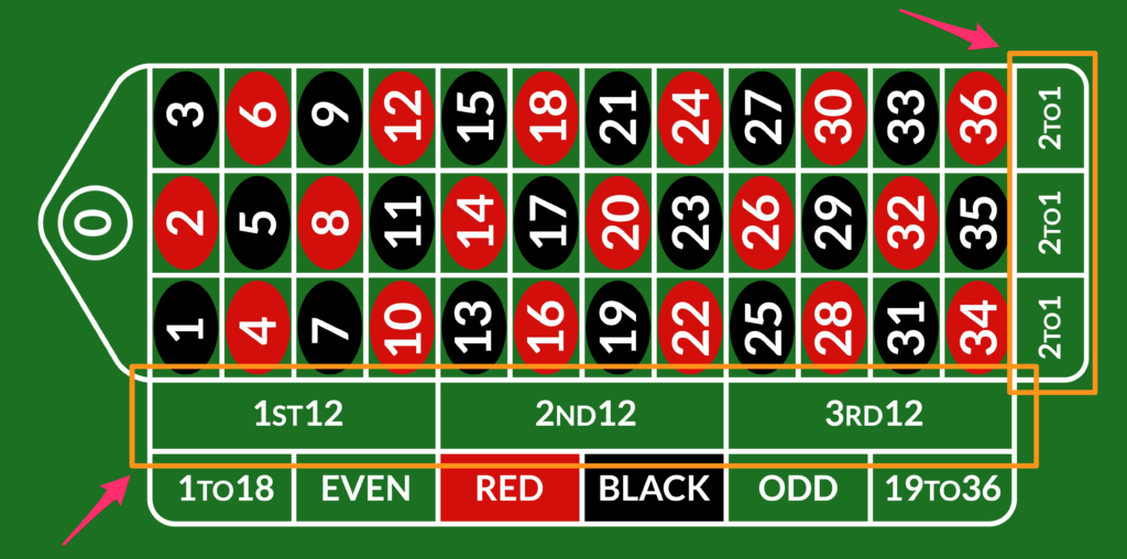 また、ココモ法が使えるのは、ルーレットの中でも3倍配当の「ダズンベット」と「コラムベット」だけです。▼