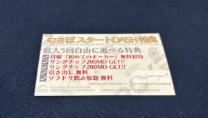 スタートダッシュカードは、以下のような特典が来店ごとに貰えて、自由に使うことができます。