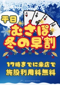 定期的に様々なイベントも開催していますので、ぜひ一度MUSASHI POKER ROOMへと足を運んでみてはいかがでしょうか?