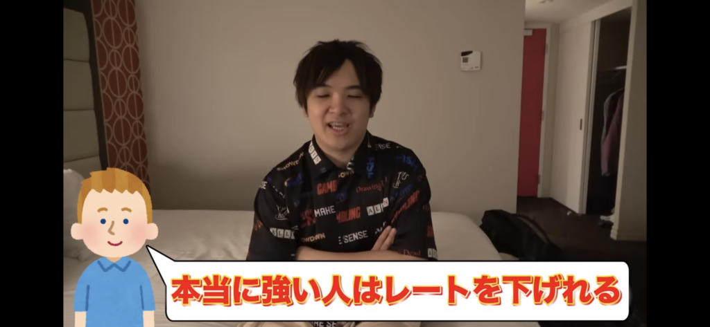 あの世界のヨコサワさんも動画内で負け過ぎてレートを下げる決断をしていました。▼