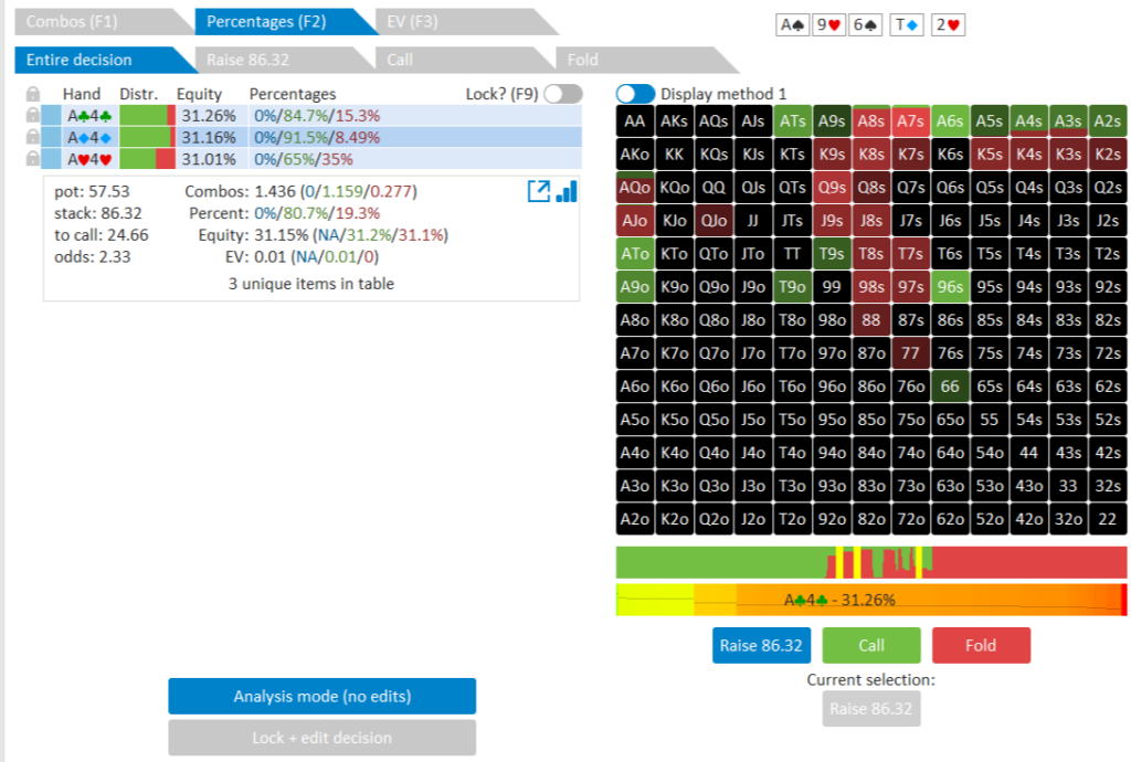 逆に、A♦4♦は相手のブラフレンジをほとんどアンブロックしていますから、手としては弱くてもブラフキャッチャーとしては優秀です。