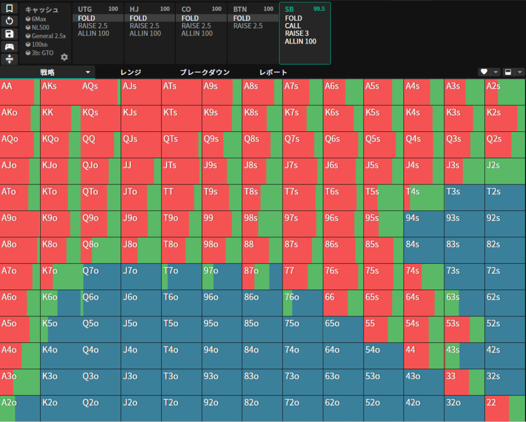 GTOWizardのチャートでSBがどのようにリンプを使っているのか調べてみましょう。