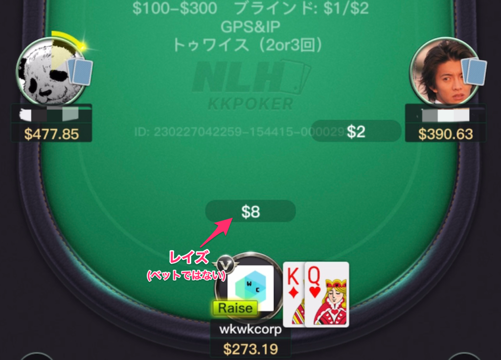 プリフロップではすでにベットしている人がいるから、最初にレイズが入るのです。