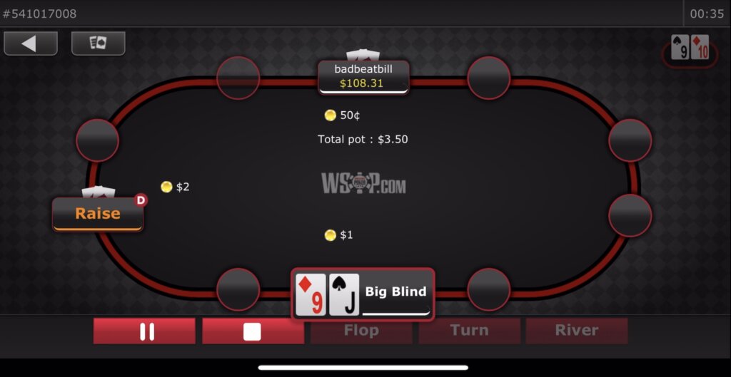 また、K♣10♠8♦7♦2♥というリバーで99や98を持っているとすれば、ブラフに変えてレイズしてみるのも手でしょう。ナッツのJ9をブロックしていますからね。