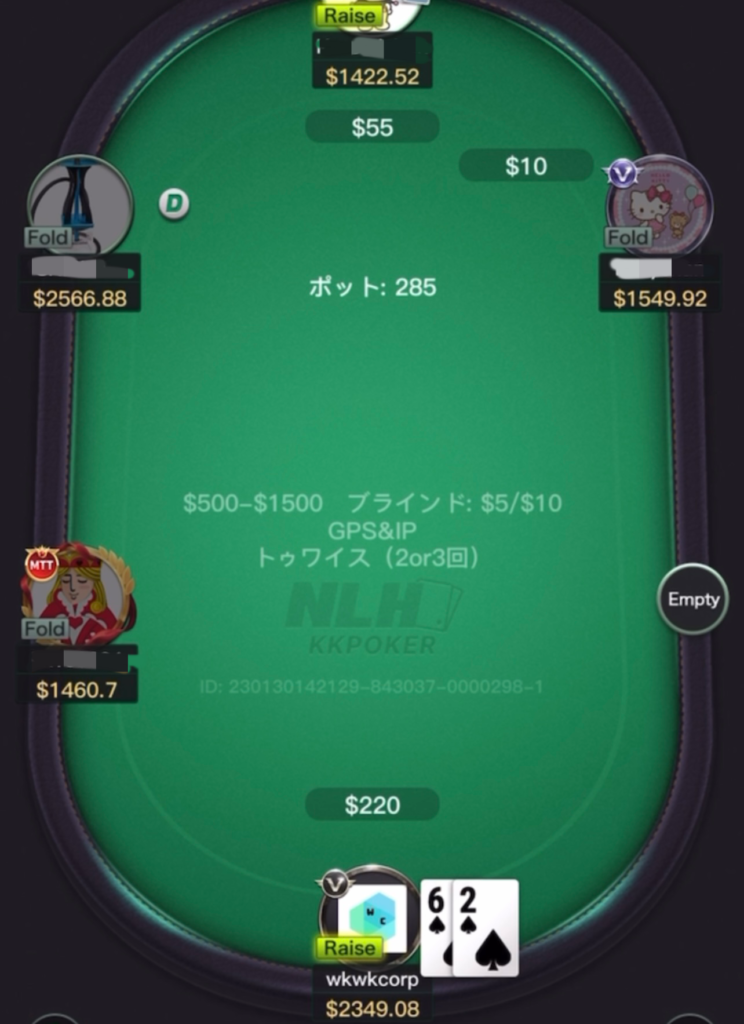 BTNという最良のポジションでプレーできることから、他のポジションからレイズが入っても広くコールしやすいです。