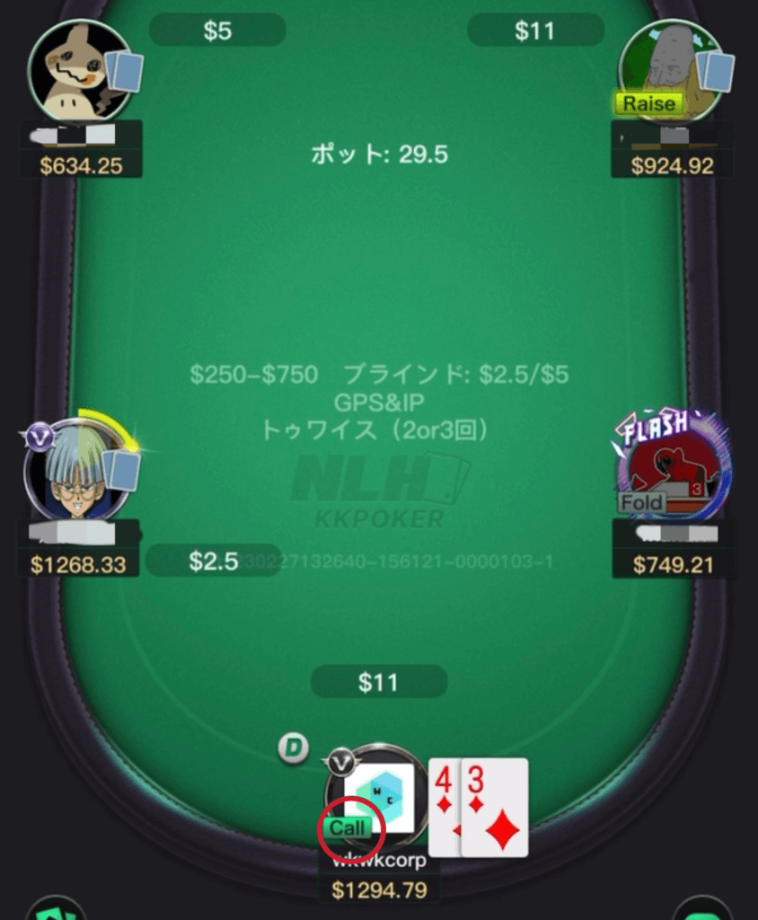 逆に、コーラーが持っていそうなドローが見えたり、ローカードばかり落ちていたりするとコールした側が有利になることが多いです。