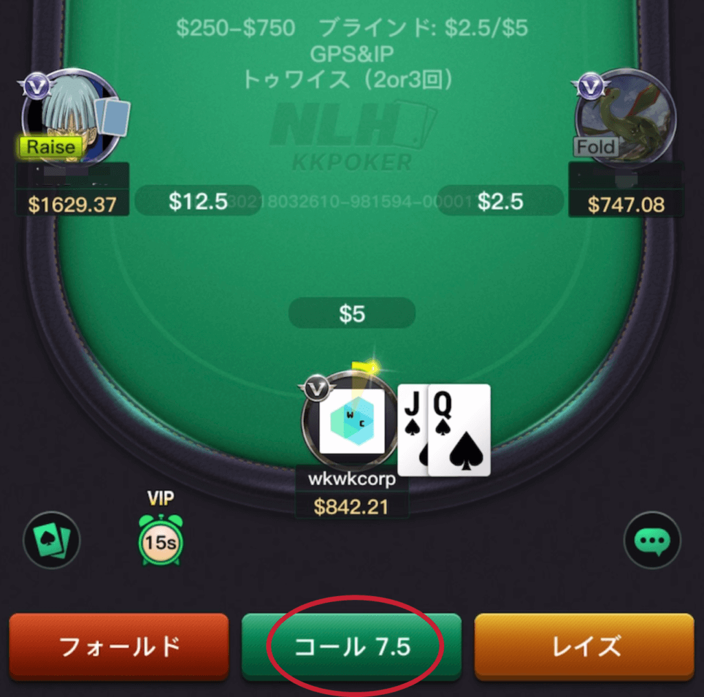 ドローをコールする場合、オッズに合っているかどうか考えます。