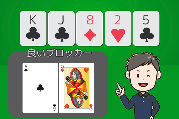 もう1つの考え方は、相手の強い手をブロックしている時にブラフをするというものです。
