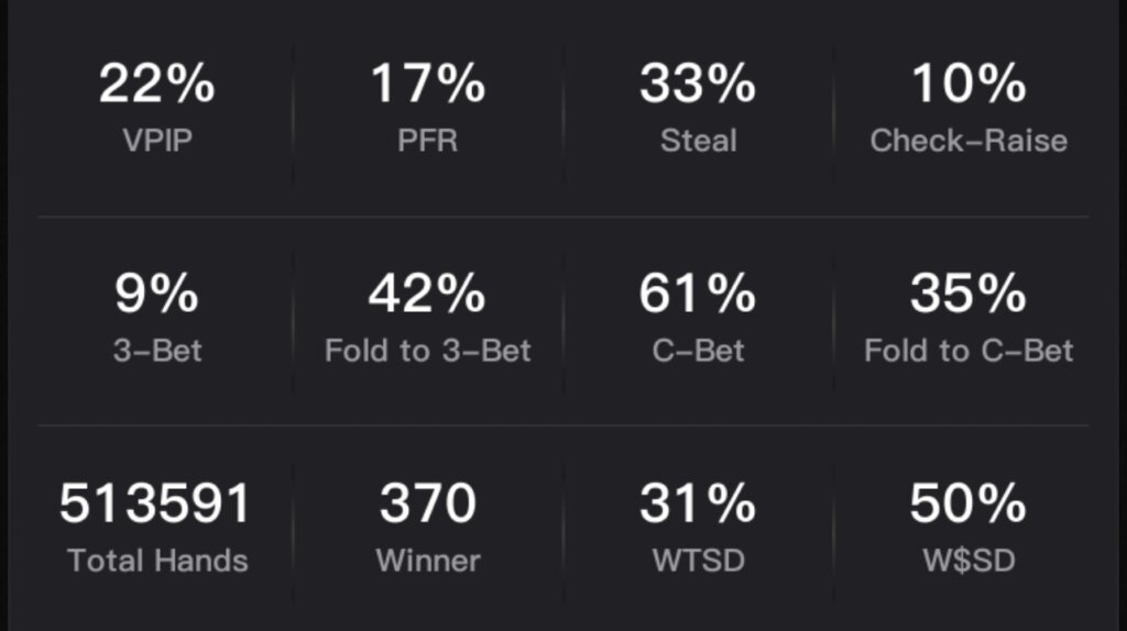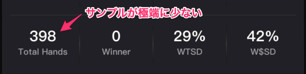 また、VPIPとPFR以外のスタッツを戦術に役立てるにはこれ以上のサンプル数が必要です。