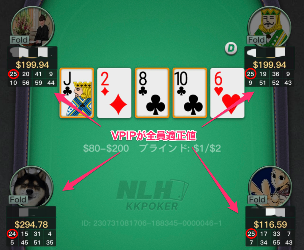 相手のVPIPが適正な場合、VPIPだけで付けこむ隙を見つけるのは難しいかもしれません。